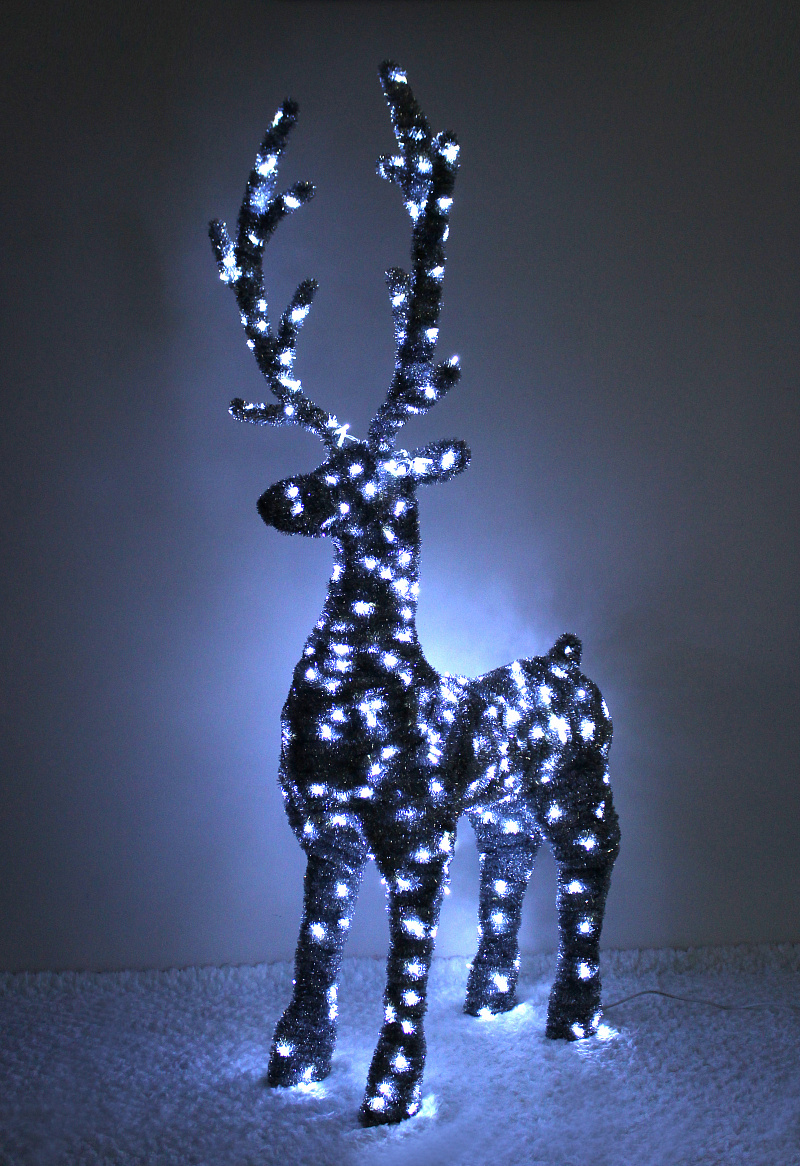 Каркасная фигура "Олень" в мишуре, со светодиодами. Цвет белый (холодный) / 2,8 метра, Для улицы и помещений IP65. / Мощность 64 Вт.